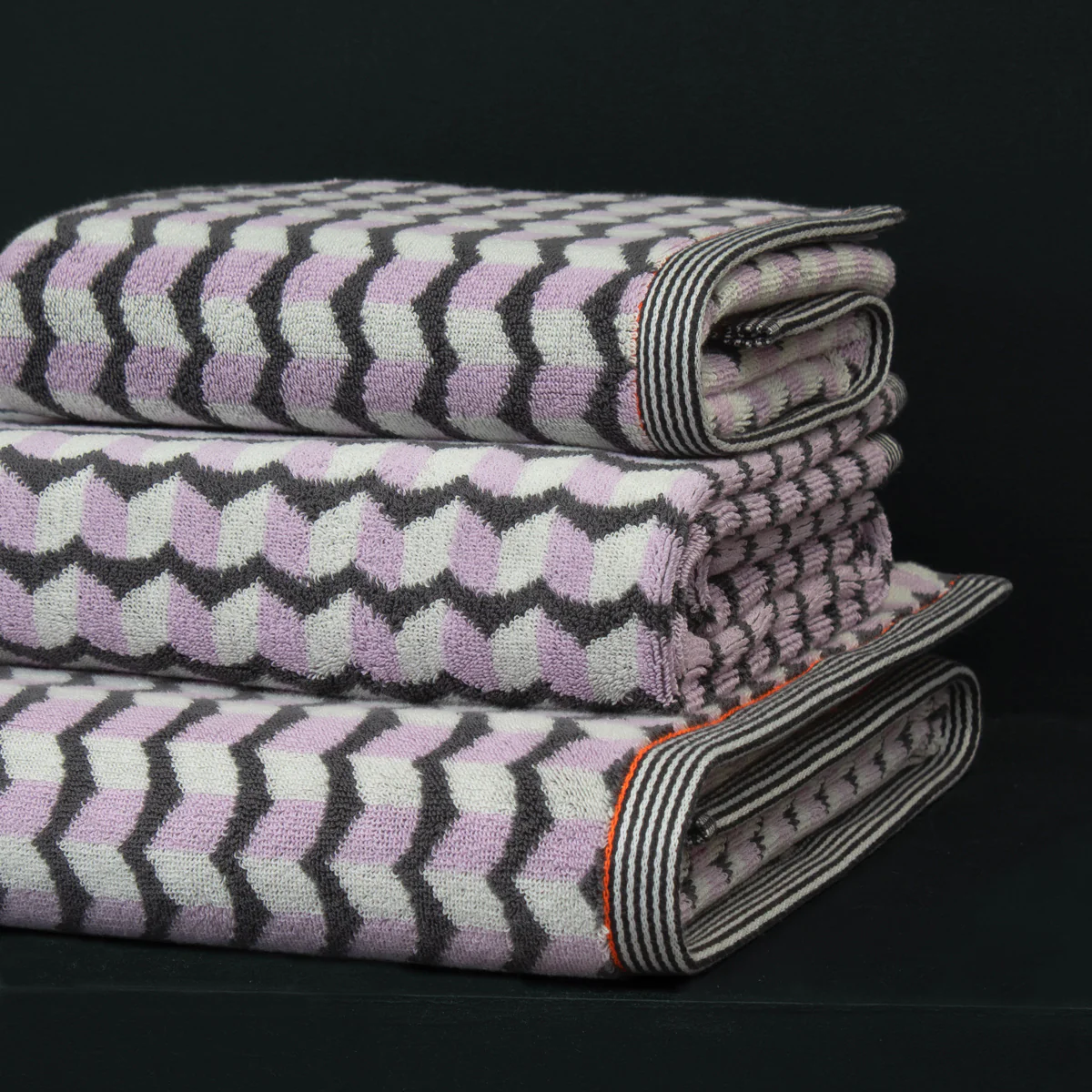 The Finchley design features a graphic geometric motif. Woven in cotton these sumptuous towels provide an instant splash of colour.