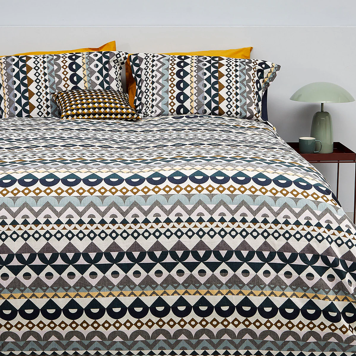 Both duvet cover and pillowcases feature a smooth percale cotton on the reverse, in a coordinating colour.