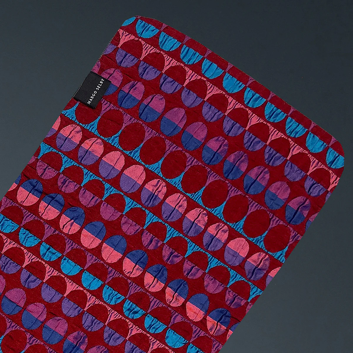 A Margo Selby silk scarf has a spontaneous and variable shape and when worn becomes a three-dimensional sculptural object full of life, rather than a flat design.